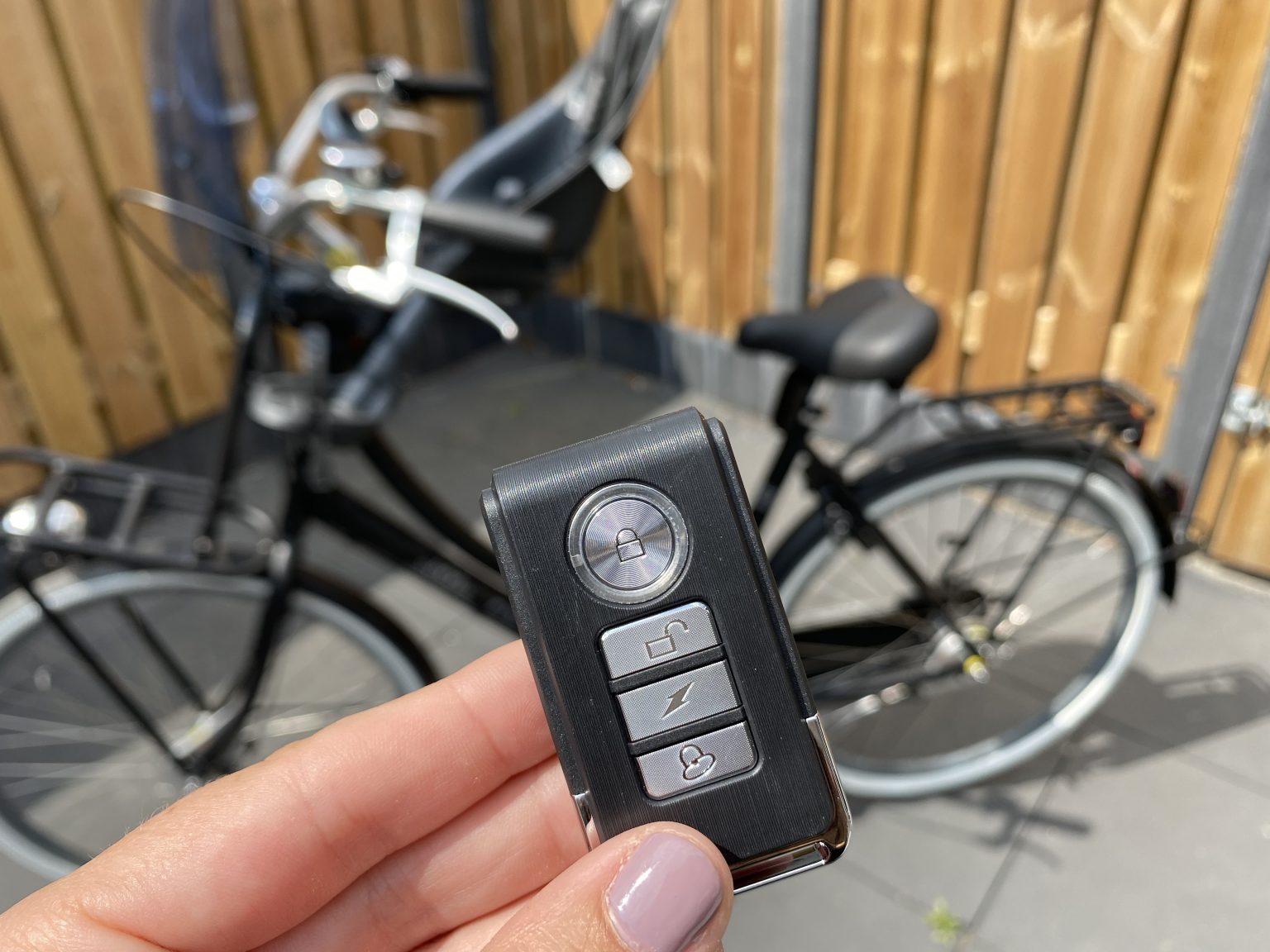 Er zijn 3 verschillende geluidssterktes: 80, 100 en 120 decibel. Het alarm staat standaard op 120 decibel ingesteld. Wil je dit aanpassen? Houd dan het open slotje ingedrukt totdat het blauwe rondje bovenaan uitgaat en vervolgens weer aangaat. Klik daarna op de knop 'fiets kwijt' (bel) onderaan en kies de gewenste sterkte. Bevestig je keuze door weer op het open slotje te klikken. Zie youtube.com/loxure voor videouitleg.
